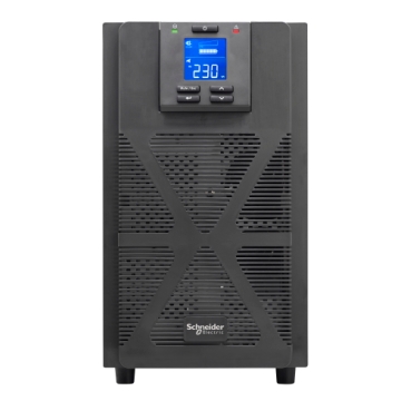 The Easy UPS On-Line SPM has a power rating of 3000VA and output power capacity of 2700 watts. The UPS features double conversion online technology and sine wave output.