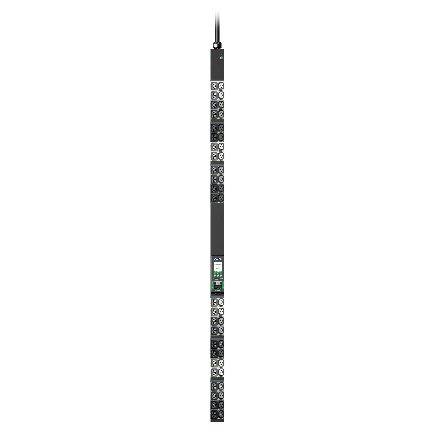 APC NetShelter Rack PDU Advanced provide reliable power distribution to IT Equipment within server and/or networking racks. Switched outlets to turn outlets on or off remotely. Outlet and PDU level power metering for power visibility and notification of potential overload. 4-in-1 combination outlets which can be used as either C13, C19, C15, or C21 outlets provide unparreled deployment flexibility. Maximum outlet density with 48 outlets in a 2.2″ wide form factor. Outlets on the PDUs are color coded and/or labeled by breaker and input phase on 3 phase models to simplify deployment. Provides an alternating phase design whereby each of the 3 phases are organized into small outlet groups which alternate from top to bottom of the PDU to facilitate better power cord management and promote better load balancing. Power Sharing allows PDUs cascaded together via 2 ethernet ports enable an Network Management Card to continue functioning in the event of an AC power loss. No interruption in Network communication, sensors operation, and alarm traps. Live Swap Network Management Card (NMC) which can be replaced without powering down the PDU or connected devices to minimize downtime in the unlikely event of an NMC power event. Rated and approved to operate up to 60C (140F) at full load ensures reliability and availability even in today’s high density deployments. Gigabit ethernet to enhance and standardize network connectivity across all assets in the data center. A second ethernet port (10/100) is available to allow cascading to other PDUs, connect to a 2nd private network, or provide network redundancy. 1% metering accuracy for the peace of mind to use NetShelter Rack PDU Advanced to bill based on power usage. In addition, the higher level of accuracy ensures the most precise measures for capacity planning and threshold alarm monitoring. Two environmental sensor ports allow for optional sensors (sold separately) to be connected. For data center deployments across multiple regions, these PDUs are both UL and CE rated providing one PDU that can be used globally to simplify and standardize deployment.