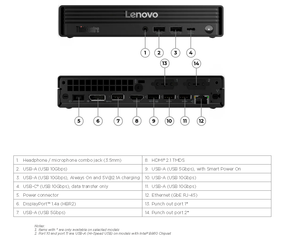 - Port 10 and port 11 are USB-A (Hi-Speed USB) on models with Intel® B860 Chipset