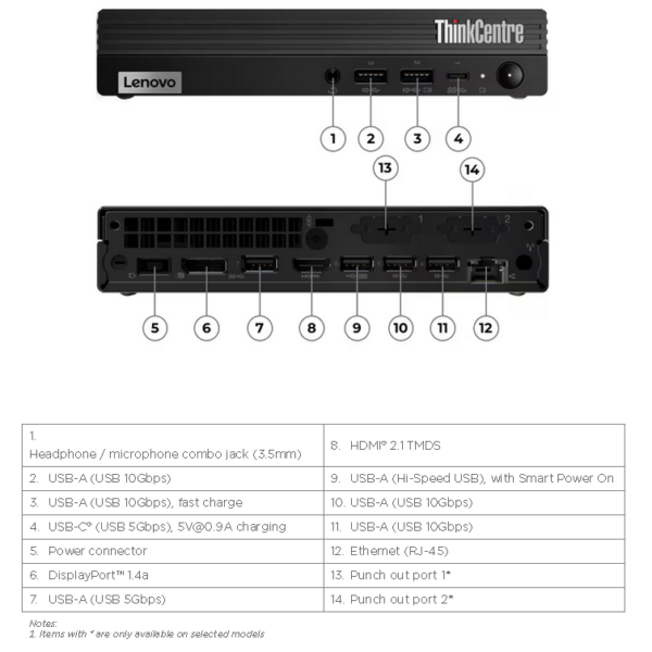 | Lenovo M70q G5 Tiny,TINY, ,i7-14700T,16GB DDR5,512GB SSD M.2 2280 NVMe G4,Integrated,No OS,No DVD, ,RTL8852BE 2x2AX+BT, , , ,VESA Mount, , ,Internal Speaker, ,135W Adapter,USB TRD ARA,USB CLP MOUSE,PUB_FRA/ARA/ENG,1Yr Carry-in, , |