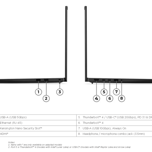 1x USB-C® (Thunderbolt™ 4 / USB4® 40Gbps), with USB PD 45-65W and DisplayPort™ 2.1 |