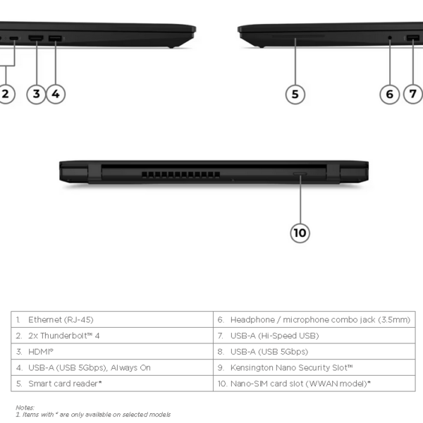 Various docking solutions supported via Thunderbolt™ or USB-C®. For more compatible docking solutions, please visit Docking for ThinkPad® L16 Gen 2 (Intel®) |