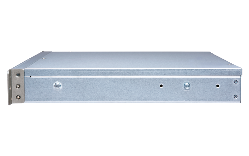 | 4-Bay quad-core 1.7 GHz short-depth rackmount NAS with 100W power supply, 8GB DDR3 SODIMM RAM (max 8GB), SATA 6Gb/s, 1x 10GbE SFP+ LAN, 2x GbE LAN, hardware encryption, Container Station, Surveillance Station: free 2, max 30, up to 1x UX-800U/UX-1200U expansion units |