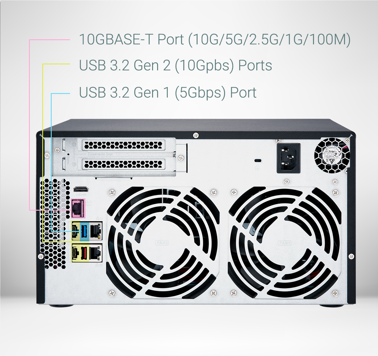 1. 5-speed 10GBASE-T RJ45 connectivity accelerates virtualization, intensive file access, large backup/restoration tasks, and media transfer.