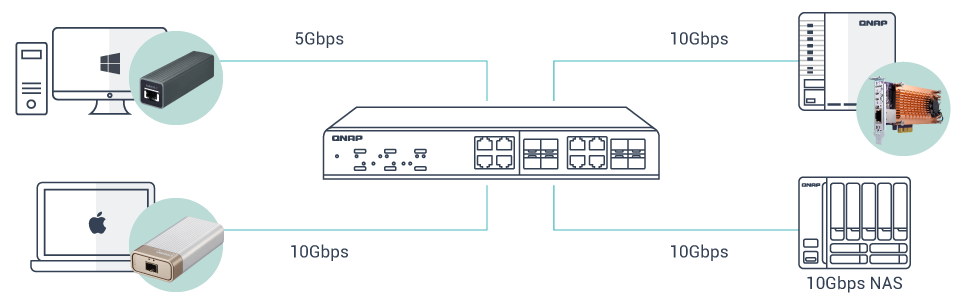 Learn More: QNAP 10GbE NAS Solution, QNAP 10GbE Network Expansion Card, QNAP USB 3.2 Gen 1 to 5GbE Network Adapter, QNAP Thunderbolt 3 to 10GbE Network Adapter