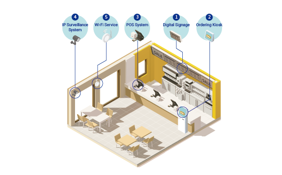 - Ordering Kiosk: 90-watt PoE capabilities and 10GbE connectivity for transferring customer order details.