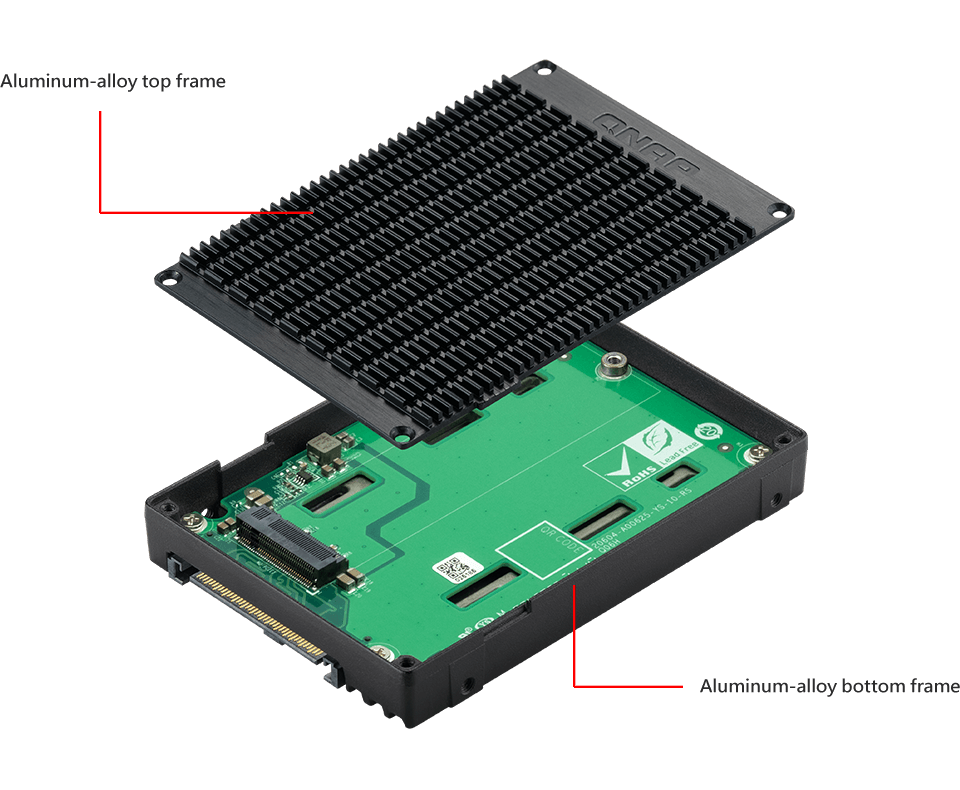 The QDA-UMP4 allows installing an M.2 PCIe 4.0 x4 NVMe SSD in a 2.5-inch U.2 (SFF-8639) PCIe 4.0 x4 NVMe SSD drive bay. No extra software or drivers are required for the QDA-UMP4 and it can be installed in a PC/workstation (Windows®, Linux®) or QNAP NAS to enable using M.2 SSDs as cost-effective alternatives to expensive U.2 SSDs.