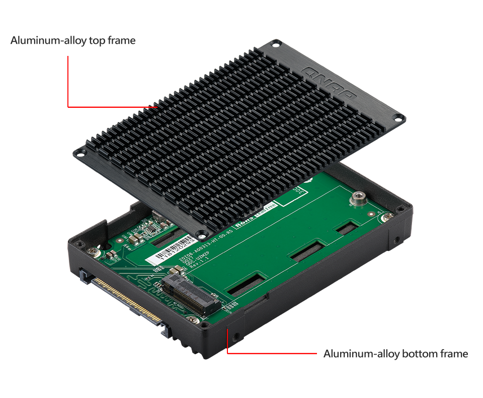The QDA-UMP can accommodate an M.2 PCIe 3.0 x4 NVMe SSD within a 2.5-inch U.2 (SFF-8639) PCIe 3.0 x4 NVMe SSD drive bay. No software driver is required for the QDA-UMP, and it can be installed in a PC/workstation (Windows®, Linux®) or QNAP NAS to replace an expensive U.2 SSD with a more-affordable M.2 SSD.