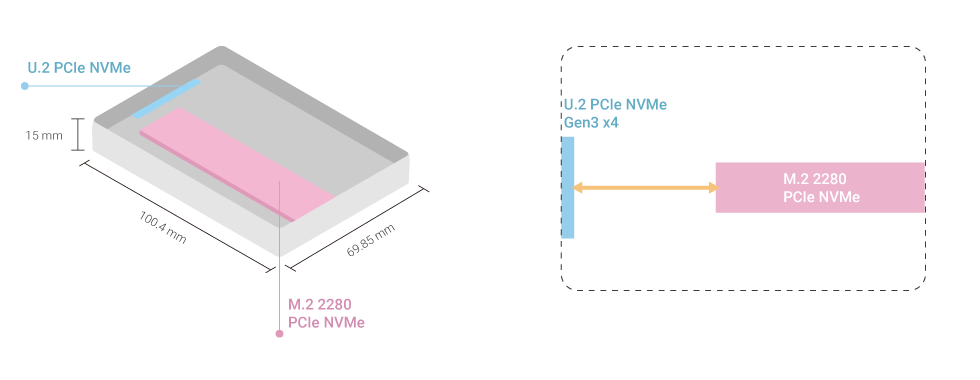| U.2 PCIe NVMe Gen3 x4 to M.2 2280 PCIe NVMe Gen3 x4 adapter |