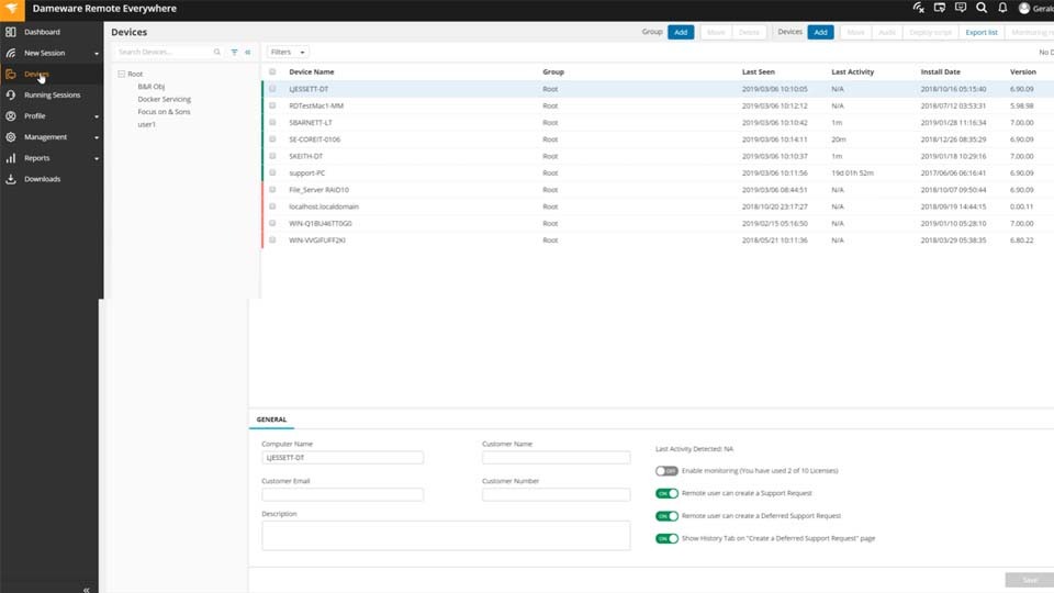 DRE allows you to take screenshots and record during the active session. Add notes to the end user’s request or to session details. You can also save recorded sessions in the cloud.