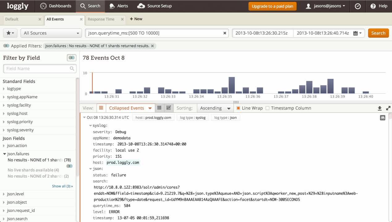 Loggly is a SaaS solution for log data management. With Loggly’s log management software, you’re able to bring logs from the depths of your entire infrastructure to one place where you can track activity and analyze trends. Best of all, because Loggly is a managed service, you don’t need any additional hardware or software to start using Loggly and we scale dynamically with your operation.